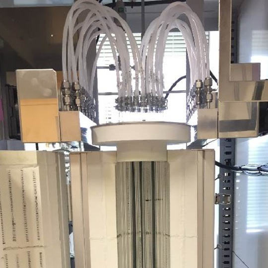 The vaporizer is designed based on the assumption that the carrier gas flows at 500 mL/min, and it is possible that the ethanol sprayed atomically inside the vaporizer is not being carried.