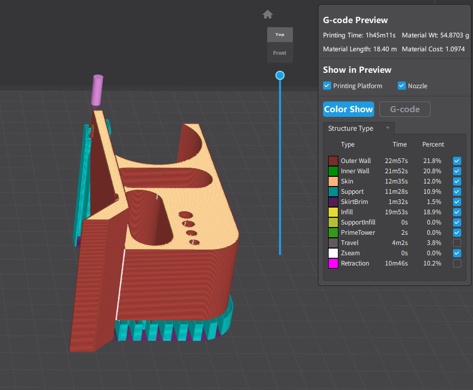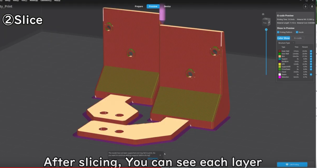 多色印刷をする場合、フィラメント交換、充填し、材料を消耗する。もちろんそれだけ時間がかかる。