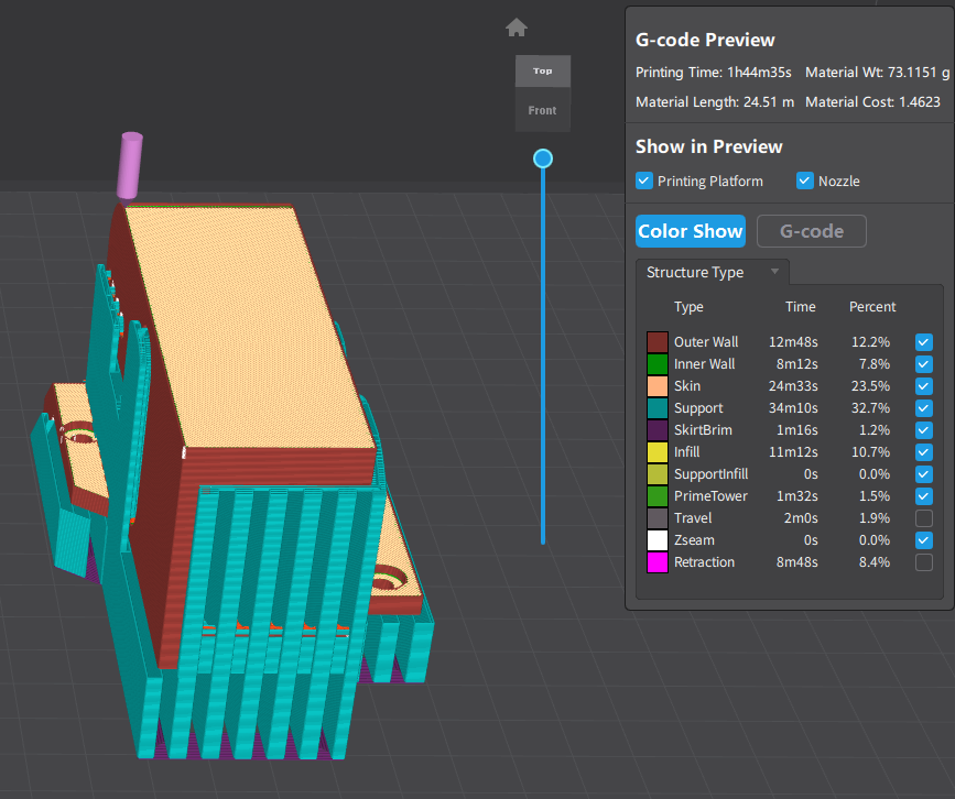 You can see “Printing Time” and “Material Wt” (Material Length, Material Cost are same meaning).